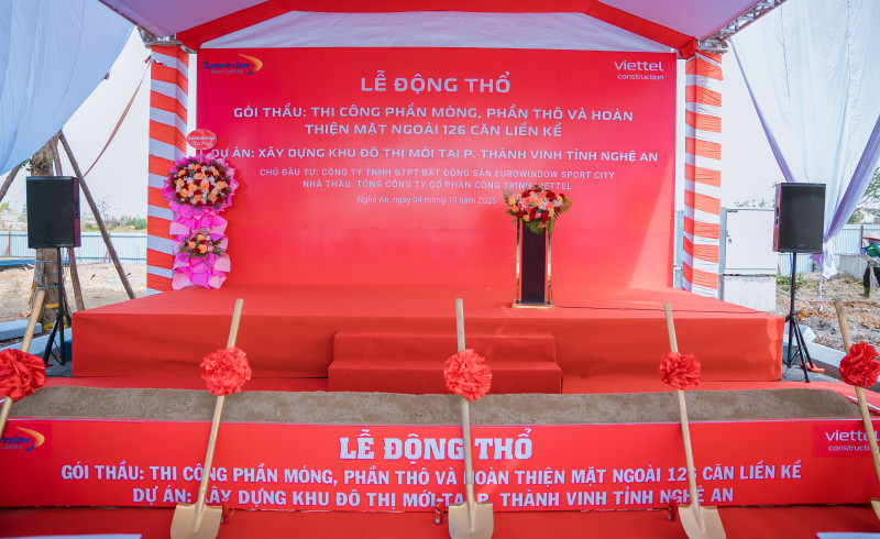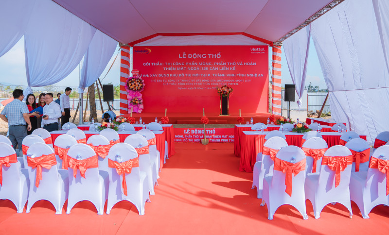 Ngày 04/10/2025, lễ động thổ gói thầu thi công phần móng, phần thô và hoàn thiện mặt ngoài 126 căn liền kề thuộc Dự án Khu đô thị mới tại phường Thành Vinh, tỉnh Nghệ An đã được tổ chức thành công tốt đẹp.